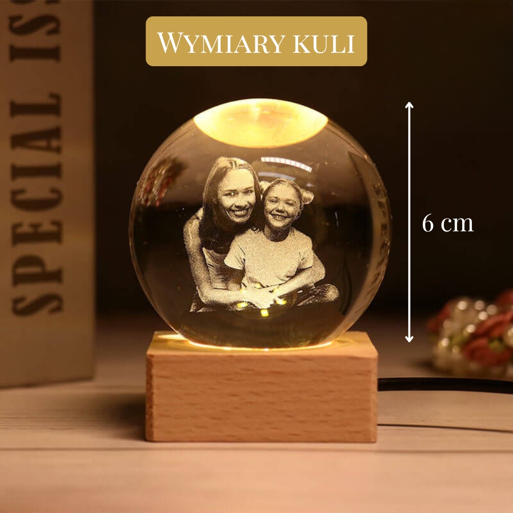 3. Efekt przeszedł moje oczekiwania. Kula wygląda pięknie po zapaleniu światła, a zdjęcie ma niesamowitą głębię. Idealny prezent, bardzo osobisty i naprawdę robi wrażenie.