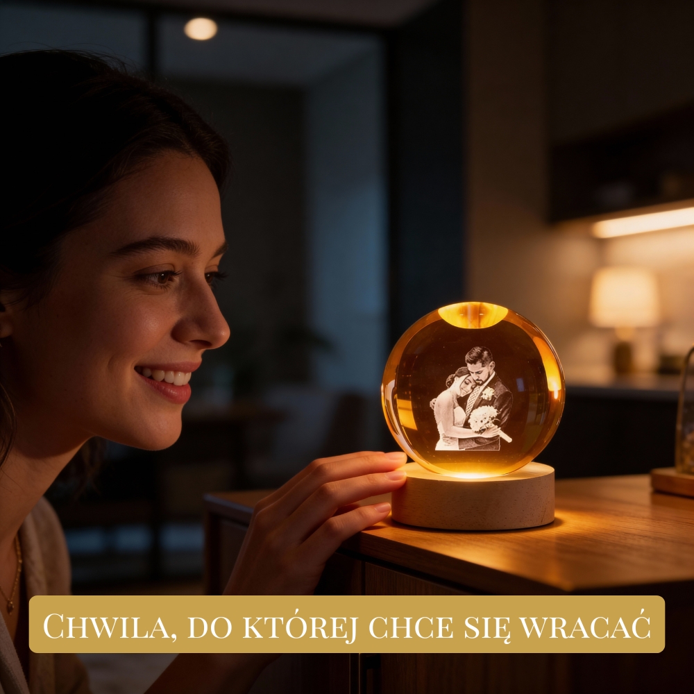 Efekt przeszedł moje oczekiwania. Kula wygląda pięknie po zapaleniu światła, a zdjęcie ma niesamowitą głębię. Idealny prezent, bardzo osobisty i naprawdę robi wrażenie.